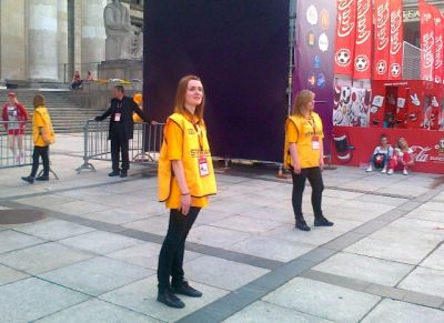 Studenci Wyższej Szkoły Bezpieczeństwa i Ochrony zabezpieczają Strefę Kibica