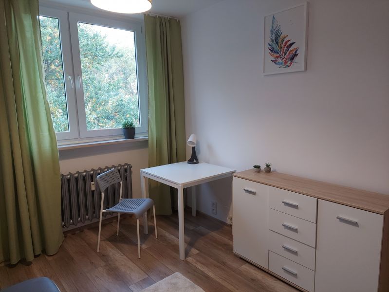 Ładny pokój, 10 m2. dla 1 osoby w mieszkaniu 3 pok. po generalnym remoncie. Współlokatorki to 2 studentki 2 roku WSB. Nowe wyposażenie , meble. Mieszkanie na Pilczycach w pięknym otoczeniu zieleni. Blok 6p, ogrzewanie miejskie.