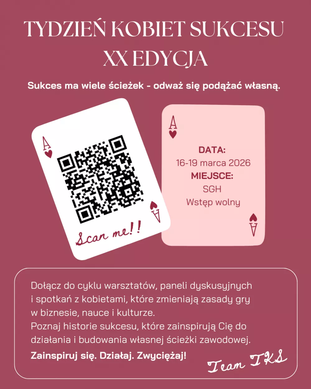 W dniach 16–19 marca mury SGH wypełnią się inspiracją, odwagą i konkretną wiedzą. Czekają na Was panele dyskusyjne, prelekcje i warsztaty prowadzone przez kobiety, które zmieniają zasady gry. Pamiętajcie, że wstęp na wszystkie wydarzenia jest wolny!