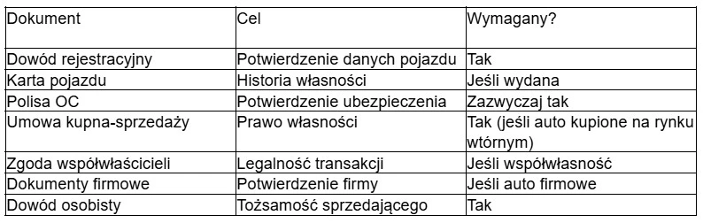 Tabela: najważniejsze dokumenty przy sprzedaży auta w skupie