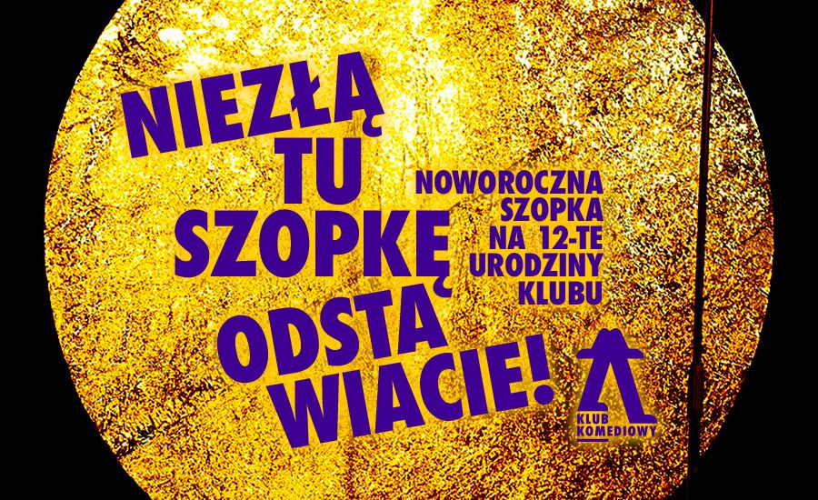 Zapraszamy na spektakl, który nawiązuje do formuły szopki noworocznej, zachowując niepublicystycznego ducha Klubu Komediowego. Za pomocą wierszy, scenek, piosenek i skeczy postaramy się podsumować minione dni w satyryczny, refleksyjny oraz typowy dla nas, niezbyt zborny i precyzyjny sposób. Przy okazji w gronie artystów_ek, pracowników_czek, przyjaciół_ek i widzów_ek Klubu pragniemy uczcić kolejny rok naszej obecności przy placu Zbawiciela w Warszawie!