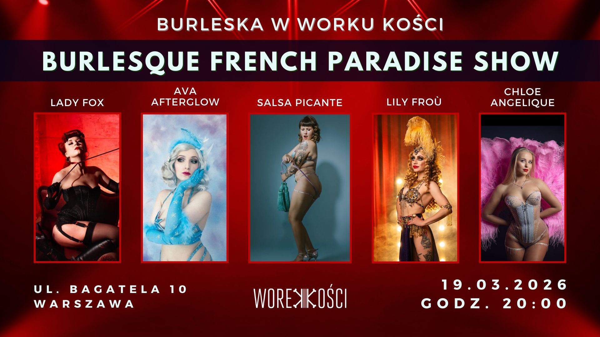 W burleskowym zmysłowym spektaklu wystąpią: Lady Fox, Lily Froù, Ava Afterglow i Chloe Angelique.