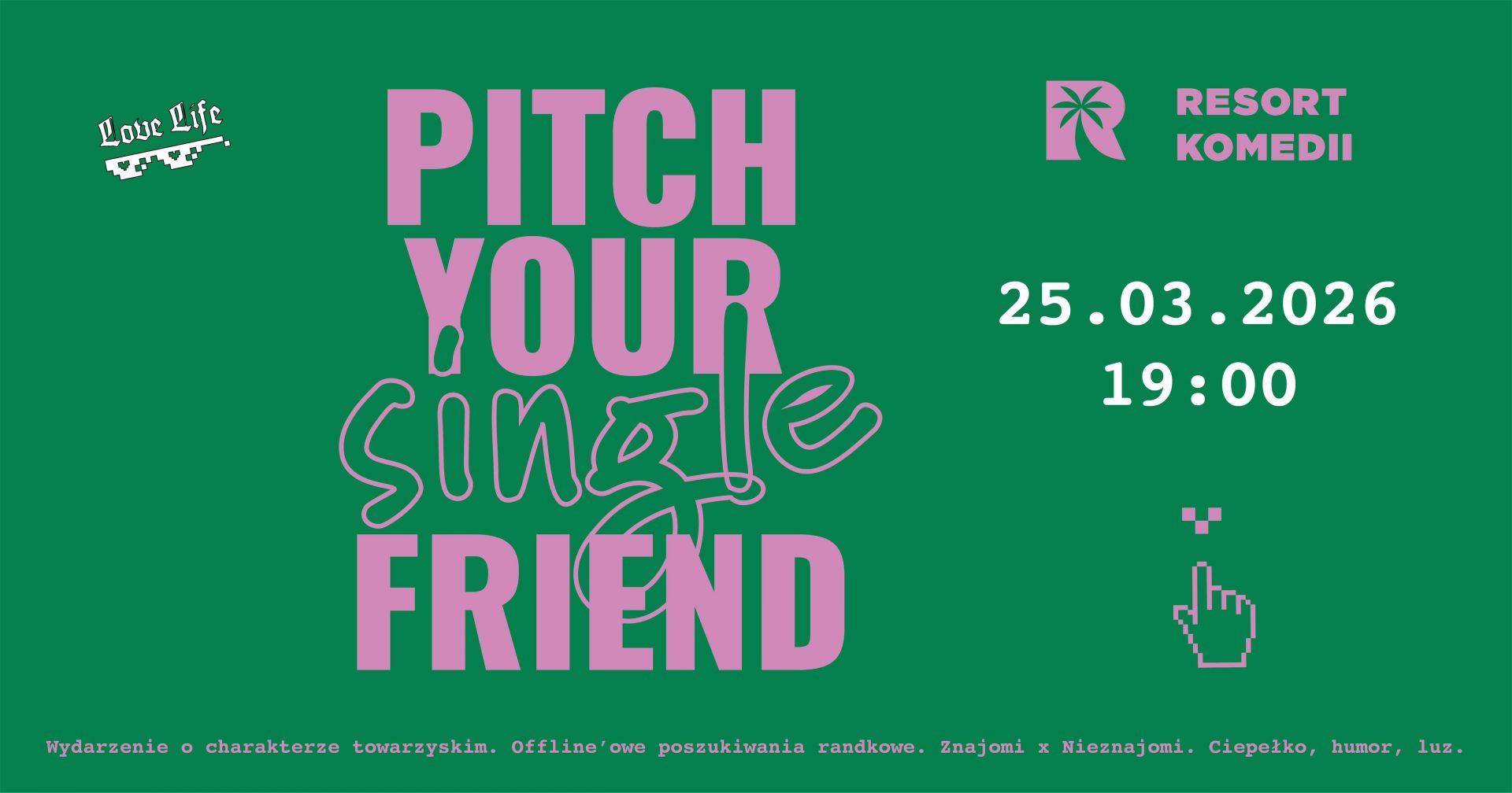 Wydarzenie oparte na sprawdzonym amerykańskim formacie “randkowym” po raz pierwszy w Polsce! Pitch your single friend - czyli 10 prezentacji singli i singielek, przedstawionych przez ich przyjaciół + networking barowy. Ciepło, z humorem, bez zbędnego krindżu. Znajomi x nieznajomi, offline, luz, otwartość na poznanie ciekawych ludzi.