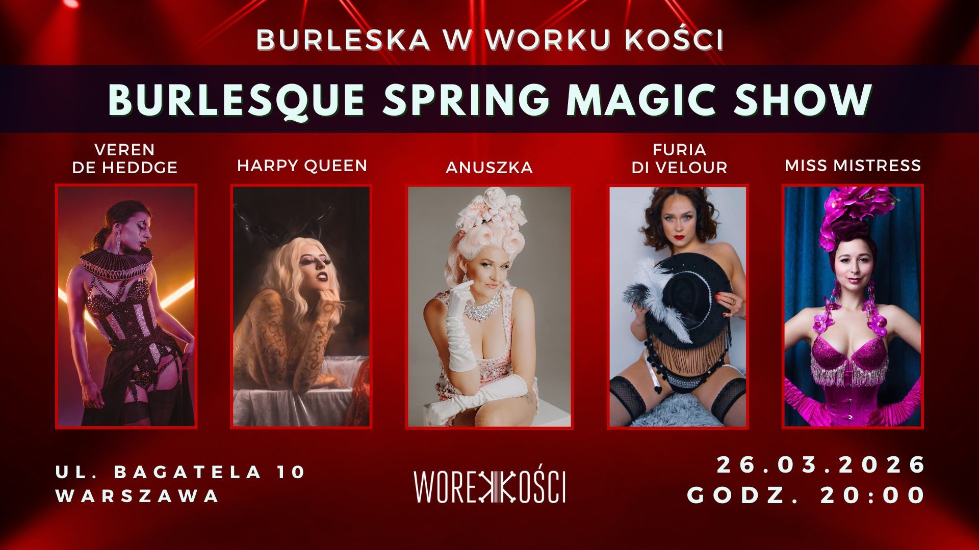 W burleskowym magicznym i wiosennym spektaklu wystąpią: Miss Mistress, Veren de Heddge, Harpy Queen i Furia di Velour.