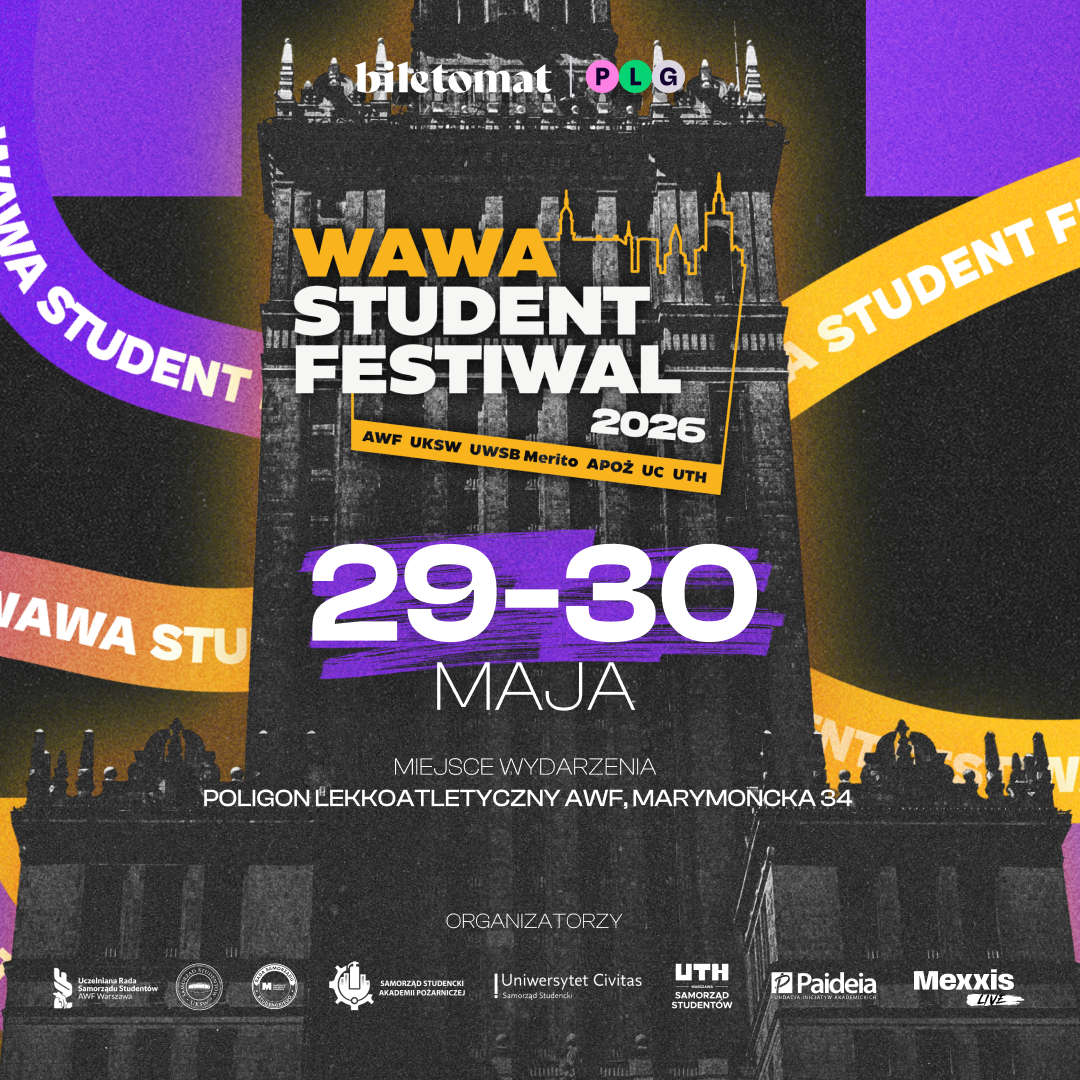 After a successful first edition, WAWA STUDENT FESTIVAL returns with its second edition. This year, 6 universities are joining forces: Akademia Wychowania Fizycznego, Uniwersytet Kardynała Stefana Wyszyńskiego, Uniwersytet WSB Merito, Akademia Pożarnicza, Uniwersytet Civitas and Uczelnia Techniczno-Handlowa!