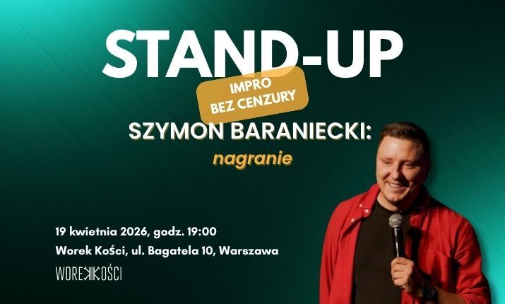 Szymon Baraniecki wjeżdża do legendarnych wnętrz Worka Kości, żeby udowodnić, że w polskim stand-upie improwizacja to jego drugie imię. Szymon to komik, który nie boi się trudnych pytań, szybkich ripost i wchodzenia w bezpośrednie interakcje. Jeśli szukasz autentyczności, energii i humoru, który powstaje na Twoich oczach (często Twoim kosztem, ale w najlepszym stylu!) – jesteś w dobrym miejscu.