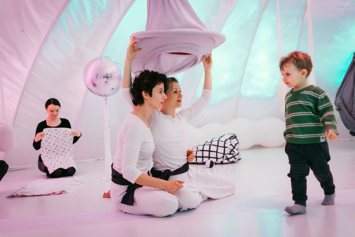 Interaktywna instalacja, która działa na zmysły dziecka i jest dostosowana do jego wieku.Instalacja performatywna Izy Chlewińskiej dla najmłodszych dzieci i ich opiekunów.MaMoMi działa na wszystkie zmysły dziecka. Wykorzystuje naturalną potrzebę zabawy i ciekawość dzieci. Poprzez ruch, obserwację, elementy wizualne i dźwięk wpływa na rozwój zdolności społecznych, poznawczych i percepcyjnych. Dziecko może aktywnie uczestniczyć w przedstawieniu lub tylko je obserwować.Sensualna przestrzeń, w której wszystko podlega prawom surrealistycznego świata. Wiszące kule, latające ryby, sensoryczne rękawy i zgniecione planety będzie można przesuwać, ściągać na ziemię, podrzucać i bawić się nimi, aby stawały się tym, czym chcemy. Dźwięk w przestrzeni będzie odzwierciedlać harmonię kosmosu. Przewodnikiem po tym fantastycznym świecie będzie wyobraźnia i głos, który mówi kilkoma językami. Podczas spektakli dwie performerki zbadają przestrzeń i wzajemne relacje za pomocą ruchu i choreografii. Ich zabawa z ciałem, jego ciężarem, długością i szerokością to początek wspólnego działania z dziećmi i ich opiekunami. Światło, subtelne wizualizacje i zapach wprowadzą was w stan relaksu ciała i umysłu.MaMoMi to przestrzeń, w której można odpocząć, umocnić kontakt z dzieckiem, spędzić z nim dobry czas, a później przenieść to doświadczenie do domu. Jak to działa?Ubierz się w luźne, wygodne ubrania, które nie ograniczają ruchów.Przyjdź minimum 15 minut przed rozpoczęciem, zdejmij płaszcz i buty przed wejściem.Czas trwania to 30 minut, odliczany od wejścia ostatniego widza.Wewnątrz instalacji swobodnie zmieniaj miejsca pobytu i sposoby uczestnictwa. Możesz siedzieć, leżeć, dołączyć do działania, bawić się, dotykać, obserwować, spać, płakać, głośno wykrzykiwać, cieszyć się, śpiewać...Po 30 minutach performerzy wychodzą z przestrzeni, a widzowie decydują o wyjściu, bądź pozostaniu w środku (maks. 15 minut).Dla dzieci w wieku 0,5 - 2 lata.Opiekunowie również zobowiązani są do wykupienia biletów.