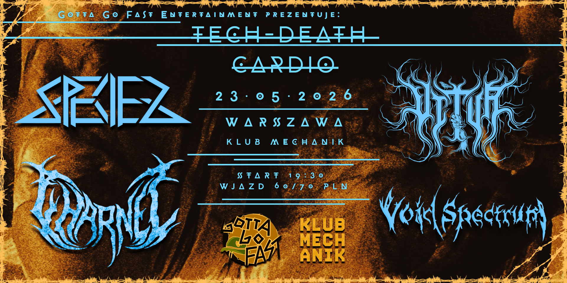 4 bezkompromisowe składy - SPECIES, VITUR, CHARNEL oraz VOID SPECTRUM - łączą siły, by dostarczyć intensywny wieczór pełen złożonych riffów, ekstremalnej energii i muzycznych eksperymentów.