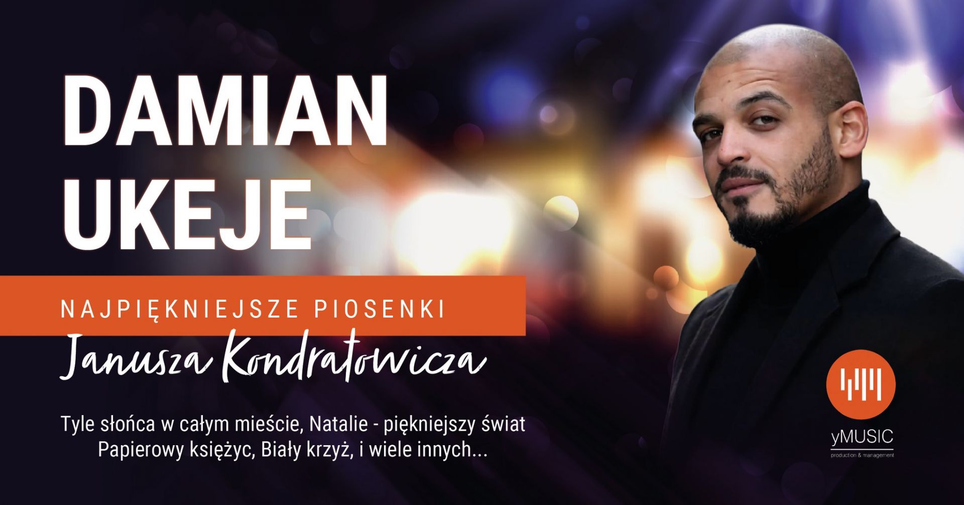 Najpiękniejsze piosenki Janusza Kondratowicza śpiewa Damian UkejeTo wyjątkowy koncert będący muzycznym hołdem dla jednego z najwybitniejszych autorów tekstów w historii polskiej piosenki – Janusz Kondratowicz. Jego utwory od dekad poruszają kolejne pokolenia słuchaczy – pełne emocji, poetyckiej wrażliwości i niezwykłej melodii słowa.Podczas koncertu Damian Ukeje zabiera publiczność w niezwykle osobistą muzyczną podróż przez najpiękniejsze utwory mistrza. Artysta, znany z ogromnej ekspresji scenicznej i charakterystycznej barwy głosu, prezentuje je w kameralnej, eleganckiej formie – przy akompaniamencie fortepianu. Minimalizm aranżacji pozwala w pełni wybrzmieć słowom i emocjom zawartym w tych ponadczasowych tekstach.